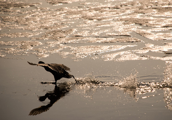 Einantis vandens paviršiumi tarsi koks Jezus ir paliekantis tykštančius pėdsakus aplink paskutiniam ledui tirpstant