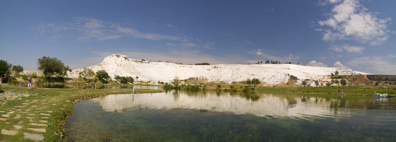 Mineralinis vanduo, turtingas druskų teka kalnų šlaitais žemyn, apnešdamas uolas kalkių sluoksniu. Laikui bėgant susiformavo kalkių terasos, baseinai, sienos. Pamukalės vandenyse senovėje maudydavosi graikų ir romėnų didikai, imperatoriai. Tai vienas svarbausių Turkijos turistinių objektų, 1988 m. įtrauktas į UNESCO pasaulio paveldo sąrašą.