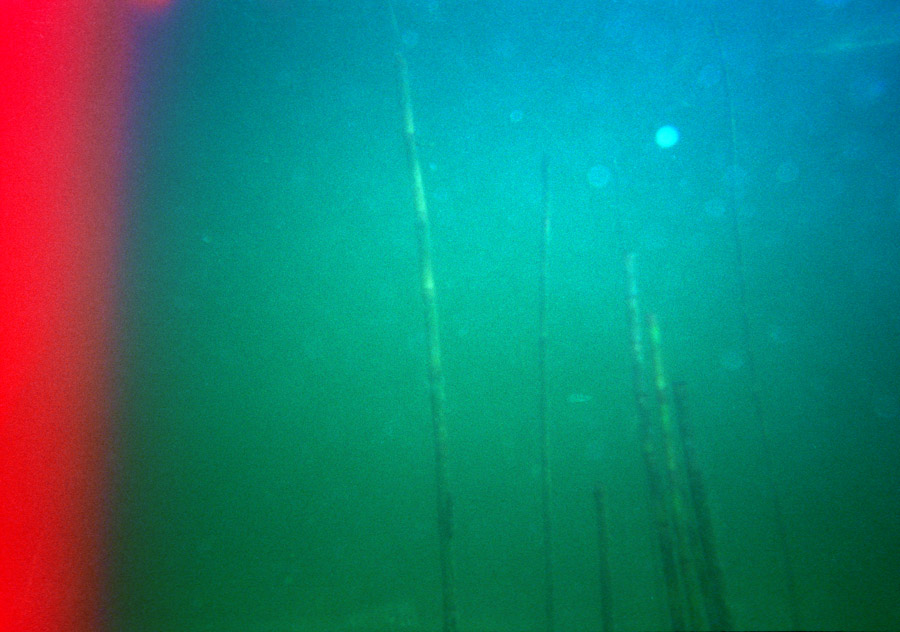 povandeninis peizažas raudonu kraštu