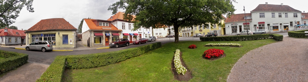 Erdvės tarp namų išties įdomios. O panoramos horizontas kažkaip pasviręs - kairėje žemiau nei dešinėje pusėje. Žvilgtelt ir prisimint kaip atrodo Kuressarės gatvė buvo smalsu. Gal turi šio miestelio gatvės fotkę, kur žiedinė sankryža? To žiedo centre gražios gėlės auginamos...