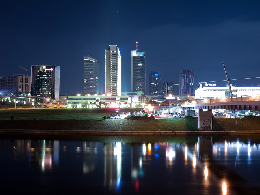 Pirmoje įpūdingas dangus, o laidai nelabai man, nors suprantu, kad tai miesto dalis. Mėlynas miestas. Gražu.