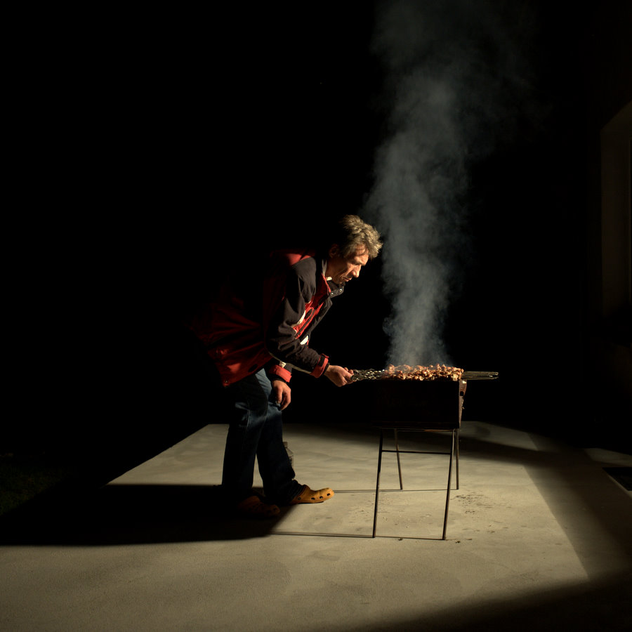 labai įdomiai mėsos kepimas prie atlapų durų, gal prie lango... atrodo, kad ryškumo taip....tik 1+
