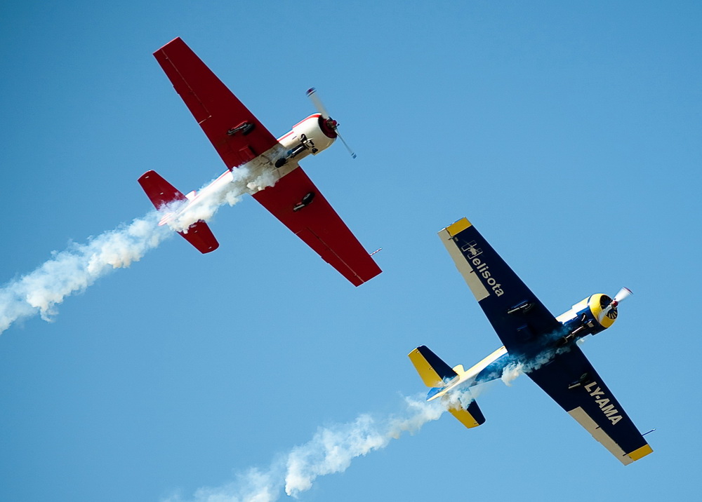 Algimantas Žentelis and Eugenijus Žentelis atlieka įspūdingą programą "Sparnas prie sparno", Yak-52, Kaunas [Aleksotas], 2010 07 17