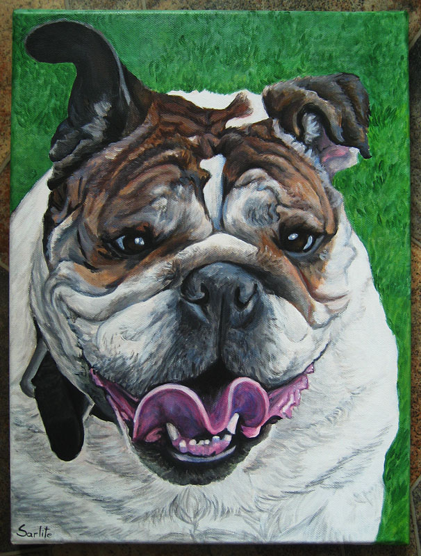 Anglų buldogas. (40X30cm.; drobė, akrilas)