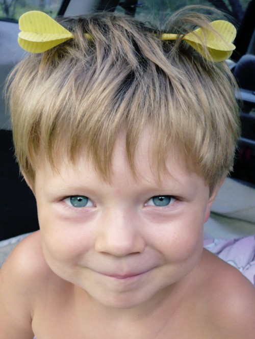 cia kartais ne streles berniukui i galva sukistos?