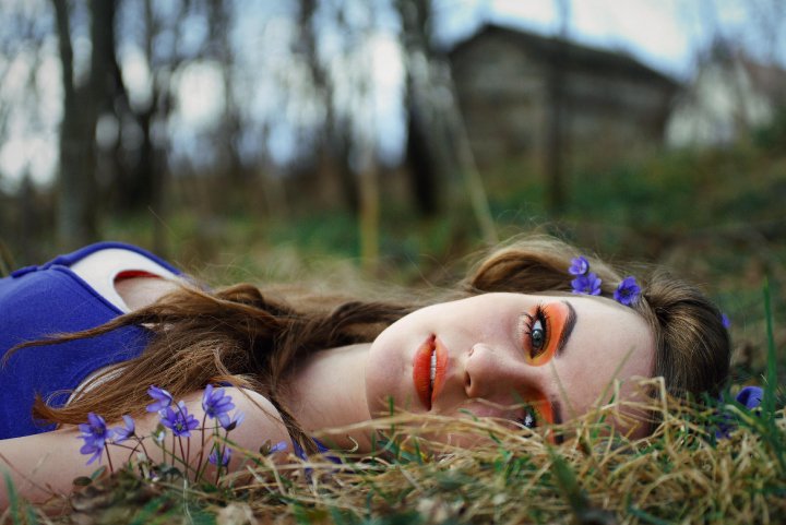 ir taip žiūriu,ir taip žiūriu ir vis kas nors man kliūna šitam darbe...:nepatinka antras planas,iš karto blaško dėmesį..reikėjo imti tokį rakursą,kad matytųsi tik modelis pievoje,be bereikalingų detalių.taip pat per daug blaško dėmesį ryškių spalvų gausumas...tai plaukuose,tai akyse,tai lūpuose,tai mėgstinyje...-negerai.ir fokusas kažkas ne labai suprastas.. BET modelio žvilgsnis tikrai įtraukiantis ir sukaustantis,o tai duoda didelį pliusą bei tos minumialiai pravertos lūpos suteikia sąstingio efekto-puiku.