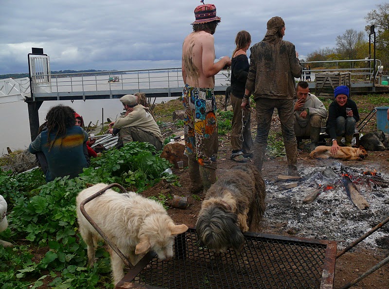 buvo dvidesimt keli zmogai ir bent desimt sunu: baltas - Ildefixas (seimininkas Urkis, baskas is Ispanijos), bobteilas - Budzikas, seimininke - Gven is Bretanes