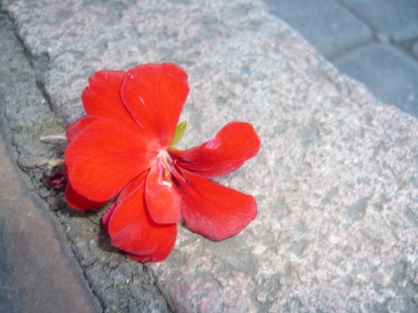 Pilkų miesto gatvių fone, gyvybės akibrokštas.