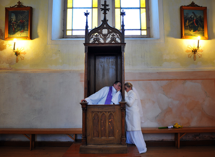 Jaunoji pas klebonėlį, o jaunajam visi vyrai patyliukais dalina patarimus, kaip elgtis su jaunąja pirmąją naktį: