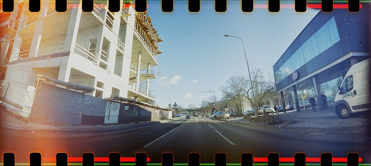 aš tai kitoj pusėj gatvės komercinės paskirties fotografijas gaminau (su šituo barškalu), juostos liko keliems šiaip kadrams.