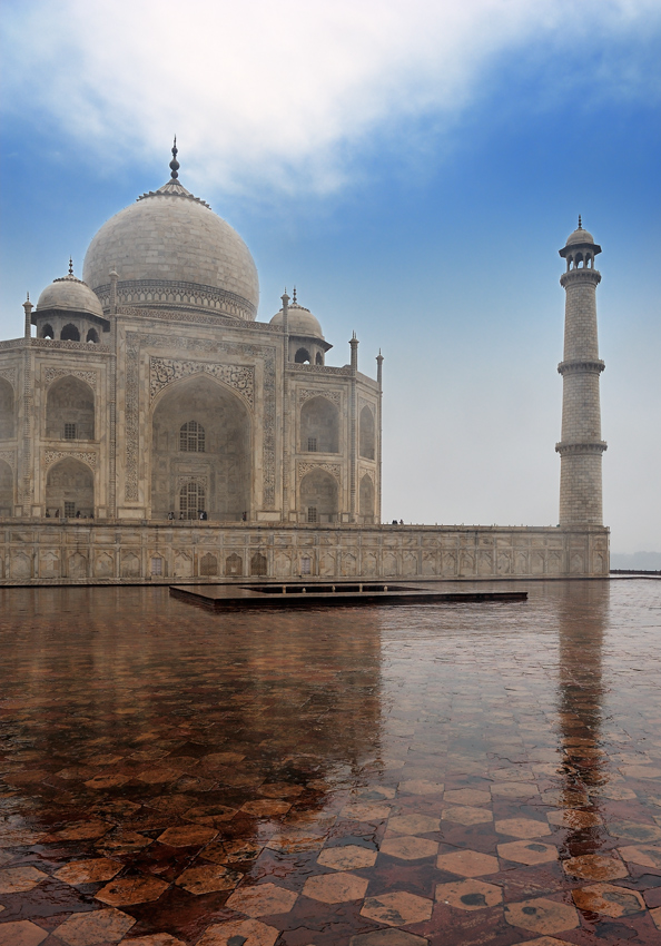 Vienas iš didingų Indijos imperatorių pradėjo šio mauzoliejaus statybą ~ 1632 m. Būtent - mauzoliejaus! Tai - ne rūmai, ne tvirtovė, ne fortas, tai - 'tik' paminklas / mauzoliejus... Statybos buvo pradėtos vykdyti mirusios imperatoriaus trečiosios žmonos, kurią jis be galo mylėjo, garbei. Beje, ji mirė būdama 32 metų ir gimdydama 14-ą vaikutį... Statybos truko ~ 20 metų, statybose dalyvavo virš 20 000 žmonių. Vien dramblių, kurie iš toli suvežė nepriekaištingos kokybės marmurą, buvo panaudota virš 15 000. Pagrindiniams šio stebuklo architektams, deja, buvo nukirstos rankos ir išdurtos akys... Kopijų būti negalėjo...