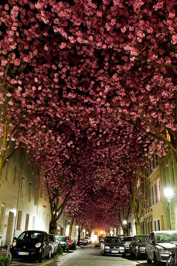 Bonoje. Kiekvienais metais, balandzio viduryje... O tuos medzius cia vadina "Vysniaziedzius". Vysniu ziedai be vysniu :D