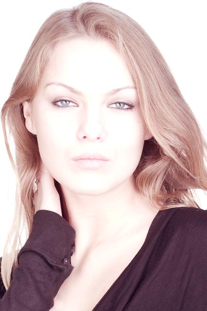 bandymas padaryti klasikinį studijinį moterišką portretą.