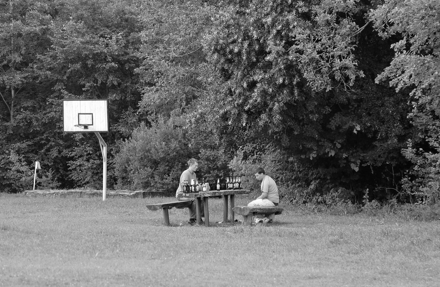 Dešnėj gal erdvės daugoka.. Jei ten trečias bruolis mižnius stovėtų, būtų dailus trikampis :)+