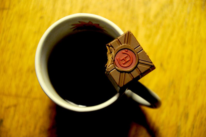 Kava su šokoladiniu saldainiu snieguotą popietę