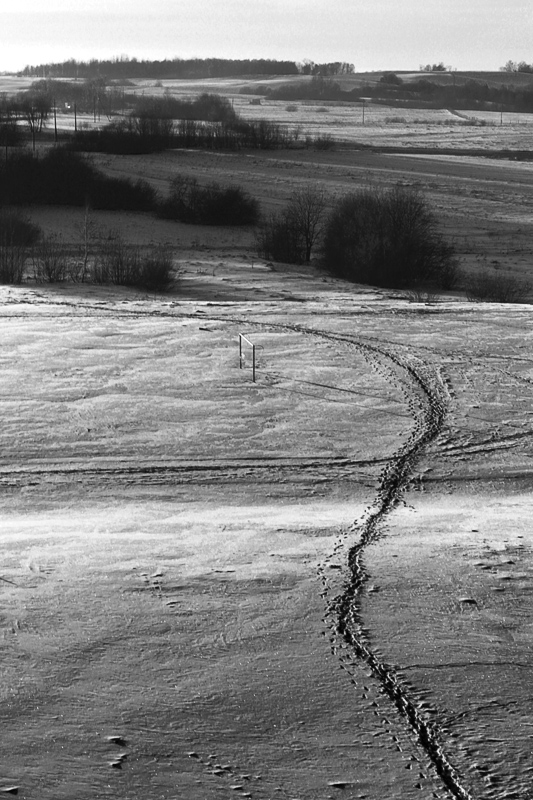 geras pastebėjimas :D bet paaiškinama. čia stadionas yra. sausu metu žmonės į gyvenvietę eina stadiono taku, kuris yra panašiu vingiu kaip ir pramintasis. Tai turbūt iš įpročio daro tą vingį :))