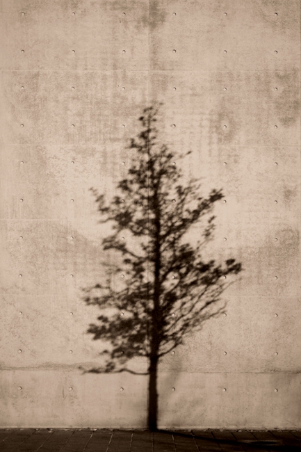 Saulė, medis ir siena