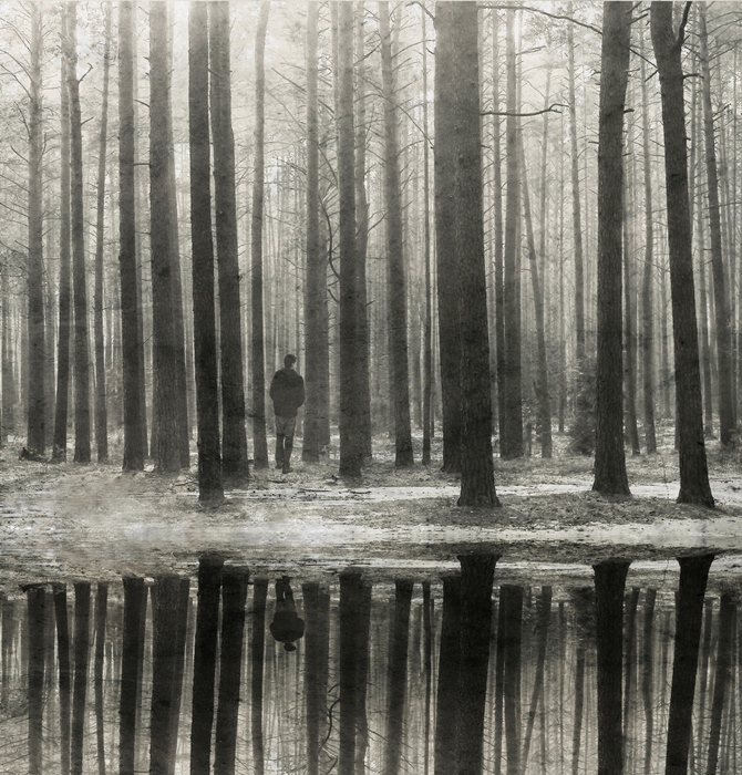 6/ Žmogus per toli nuo kranto nuėjęs, kad taip visas matytųsi atspindyje ir medžiai lyg augtų tiesiai ir vandens. Šiek tiek atspindį būčiau "pakėlusi" :)