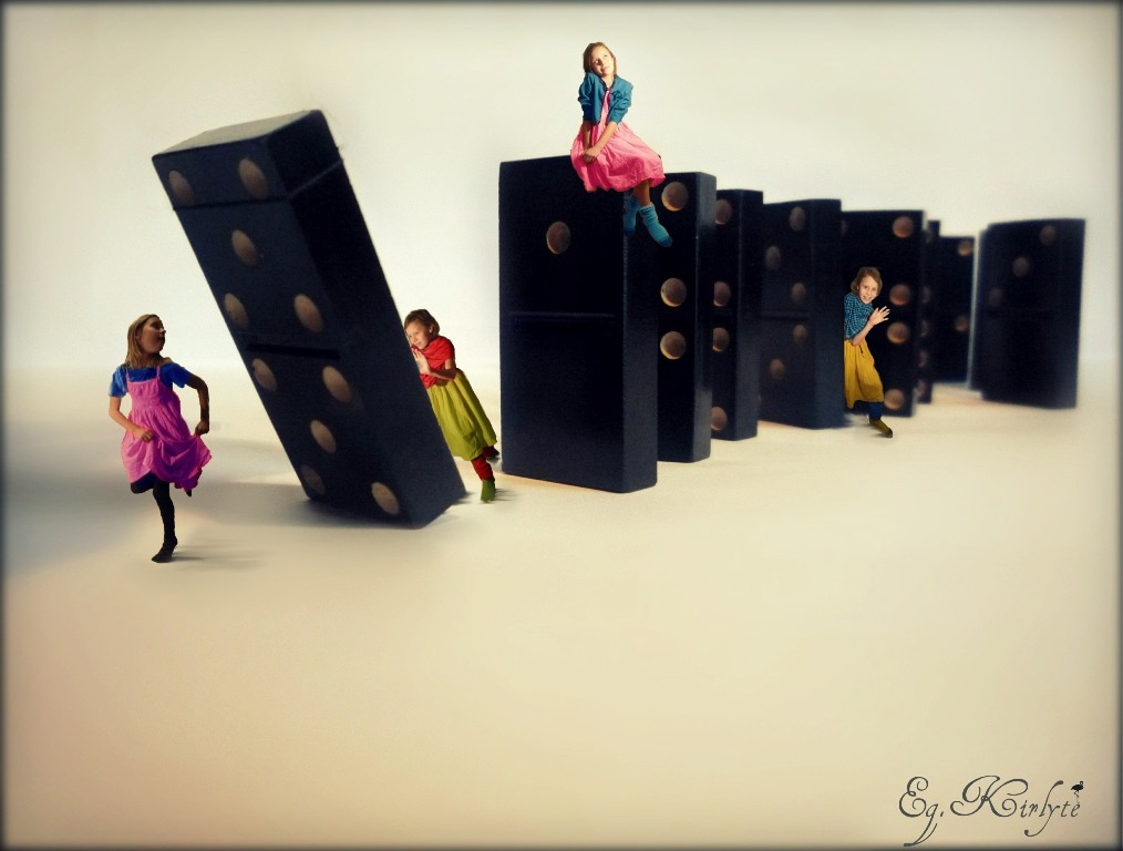 Keliu link beprotybės per domino nuklotą pasaulį