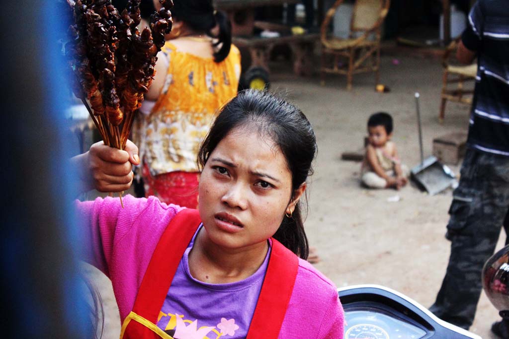 Mėsos puokščių pardavėja ir kūdikis