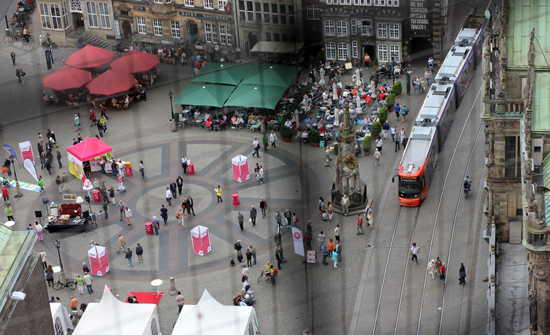 Vaizdas iš grotuoto Šv.Petro katredros bokšto į centrinę miesto aikštę.