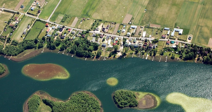 ežero pakrantė kažkur Lenkijoje, Augustavo apylinkės, iš kokio 1 km aukščio skrendant parasparniu