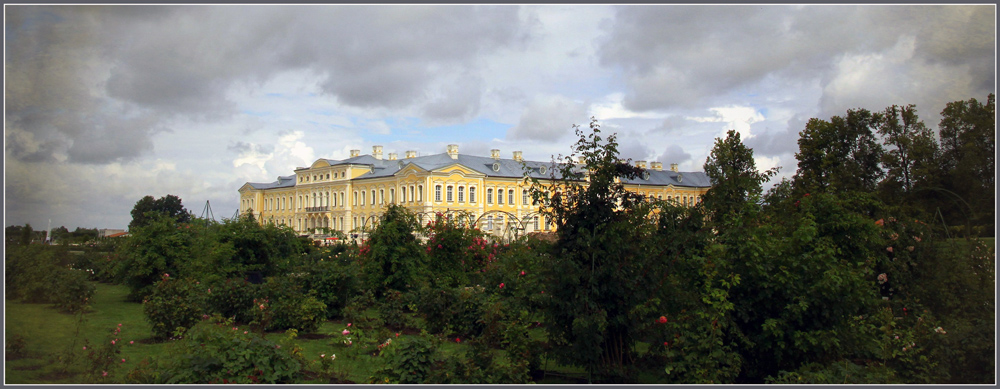 Rundalės Dvaras.Rožių krūmai matyti.