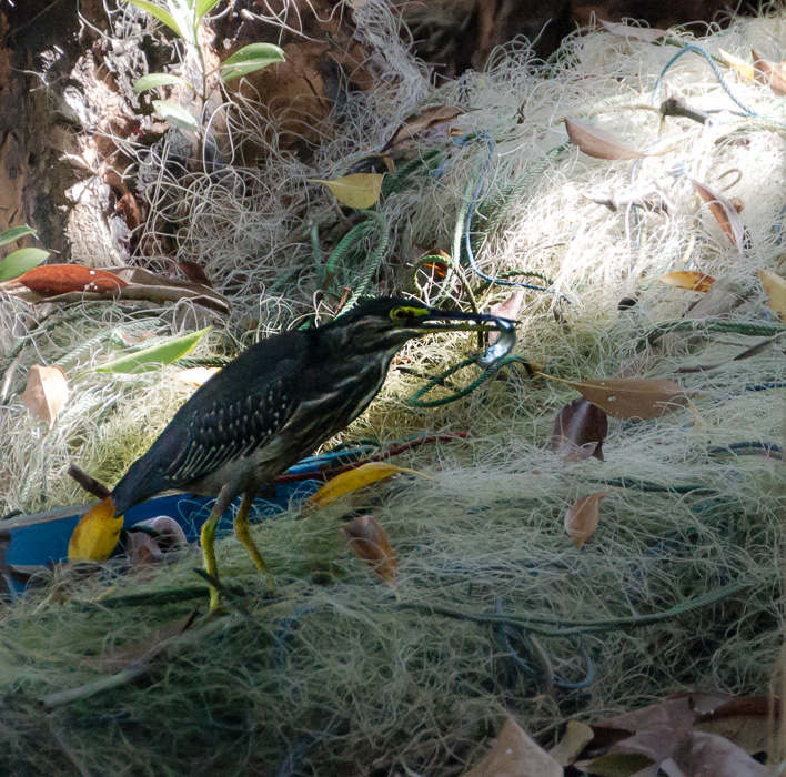 Mažasis garnys (Butorides striata): pasisekė užfiksuoti sėkmės akimirką