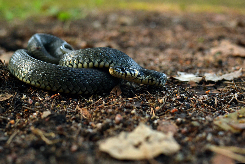 Vasaros mielas smirdalius Natrix natrix (geltonskruostis žaltys), pasiklydęs prie Pailgio ežero.