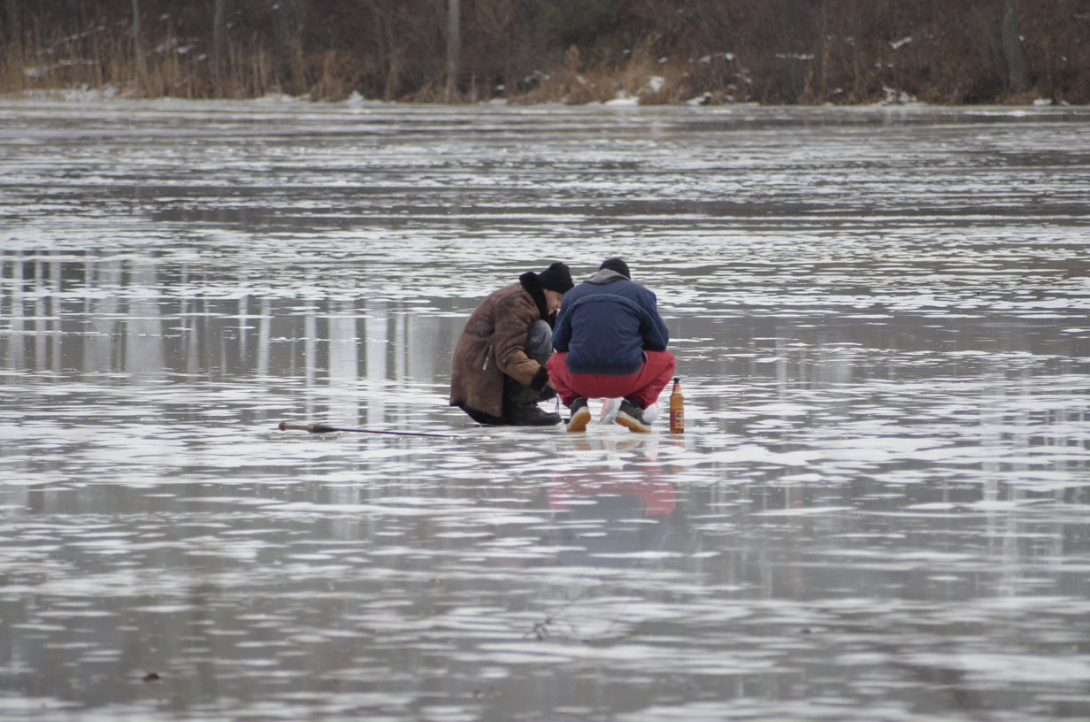 Tikri žvejai ne alų ant ledo nešasi...