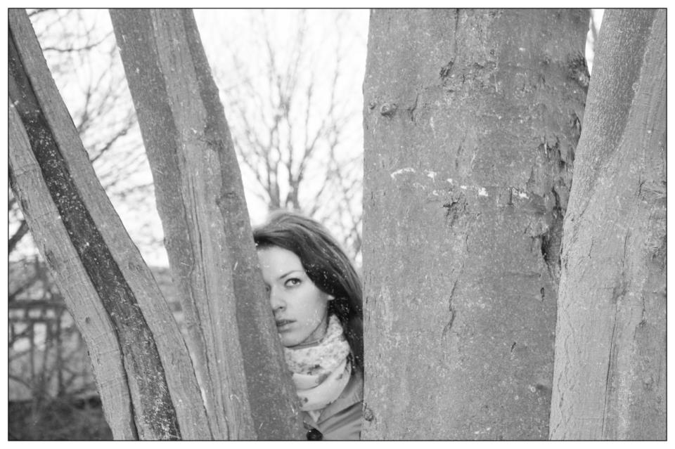 Sieloje nėra ryškumo zonų. Mergina tarsi po vandeniu, savęs beieškant... Fokusas ant medžio randų tėra jau toks blogas ;)