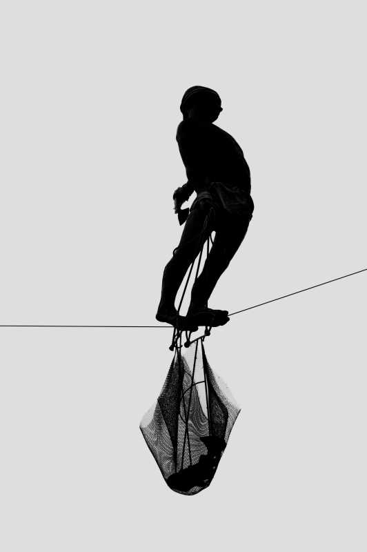 Vejuota diena pasitaikė, tad bando pusiausvyrą išlaikyt, kad praeiviams ant galvų nenusivožtų... :)