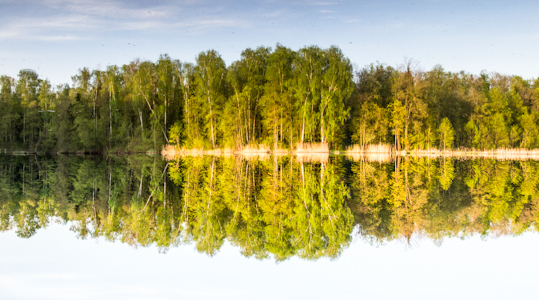 HMM, Rūta teisingai pastebėjo dėl tų kabučių :) Galų gale, kas yra iliuzija? Man atrodo, kad tai taip pat abstraktu, kaip ir pati abstrakcija ;) Esmė buvo tame, kad nuotrauka apversta ir bandžiau sudaryti (ir man pasirodė, jog pavyko) iliuziją, jog išties viskas taip ir turėjo būti, o iš tiesų dabar vanduo yra danguje, o dangus vandenyje. Štai kodėl tai yra ,,iliuzija" :)