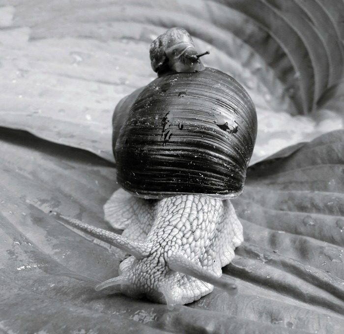 Kažin, ar čia sraigė mama taip savo vaikučiu rūpinasi, ar sraigė duktė taip gudrauja, taupydama centimetražą? :))