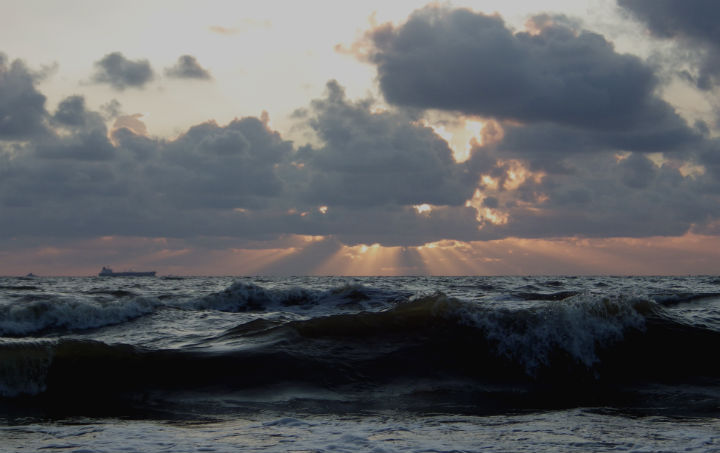 Tikrai grazu- saule, debesys , virstanti banga.