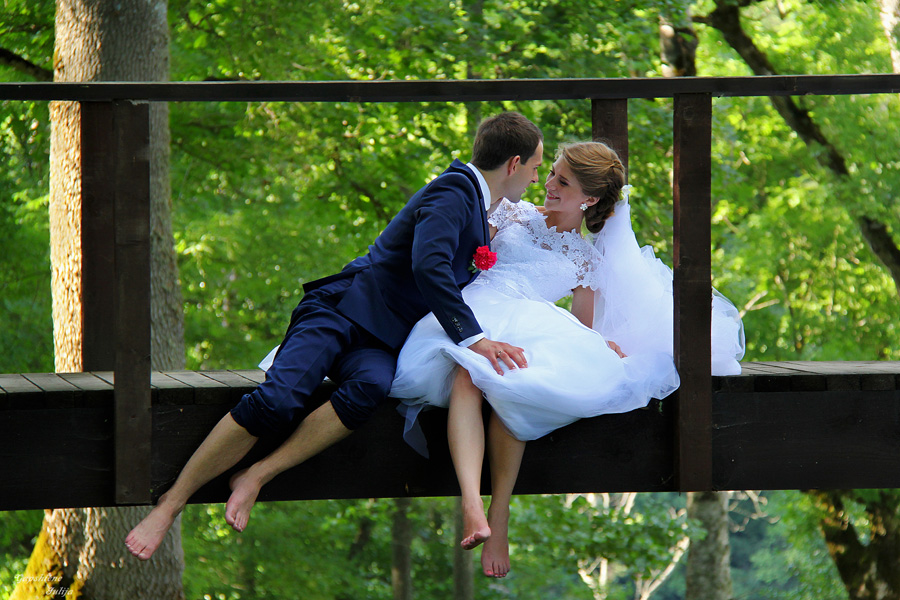 Būtų dar nuotaikingesnė, jei kadras būtų tikras, nepozuotas. Gal niekas ir neprašė jų taip padaryti, bet jaunavedžiai, žinodami, kad yra nuolatos sekami objektyvais, yra pastoviai įjungę vaidybą. Todėl nieko įdomesnio šitoje foto nematau, paprasta, dokumentinė, eilinė pozuota vestuvinė nuotrauka, labai vertinga nuotakai, gal šiek tiek jaunikiui ir nuotraukos autoriui.