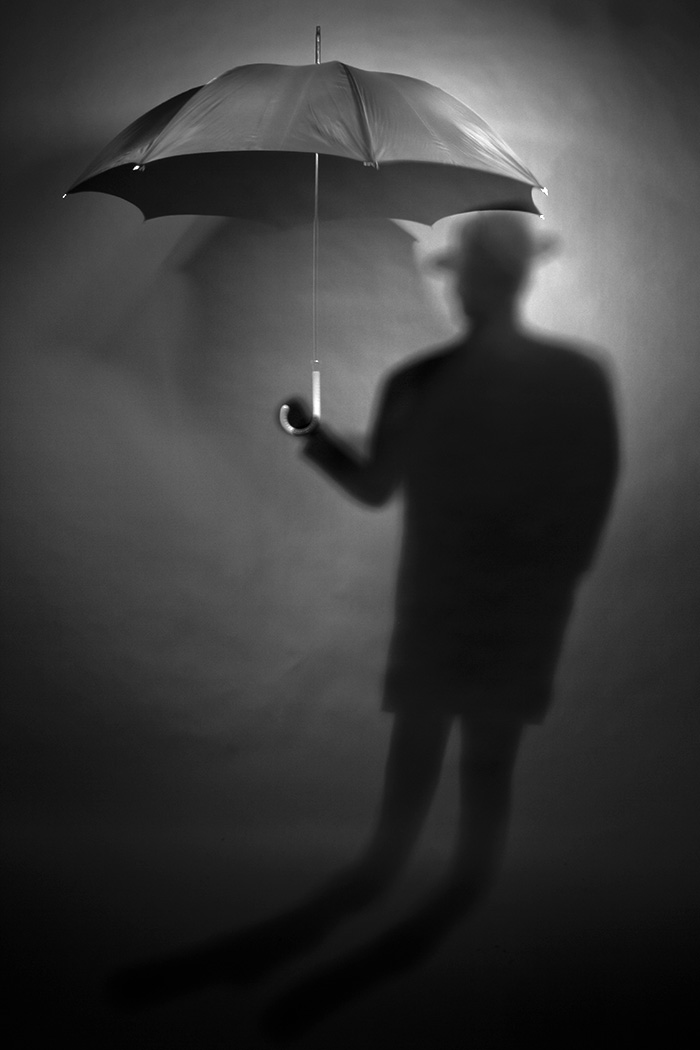 Čia mane apgavo tai, kad žmogaus šešėlis krenta iš kairės į dešinę, o skėčio viršus dešinėje apšviestas labiau ir ant skėčio šešėlis kairėje. Painiava kažkokia :-)