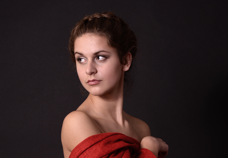 Dešinės nėra per daug. Jei dalį dešinės nukirptumėm, tai modelis atsisukęs į priekį atsitrenktų nosimi į sieną. Kur kas labiau portretą gadina per daug perverstos akys.
