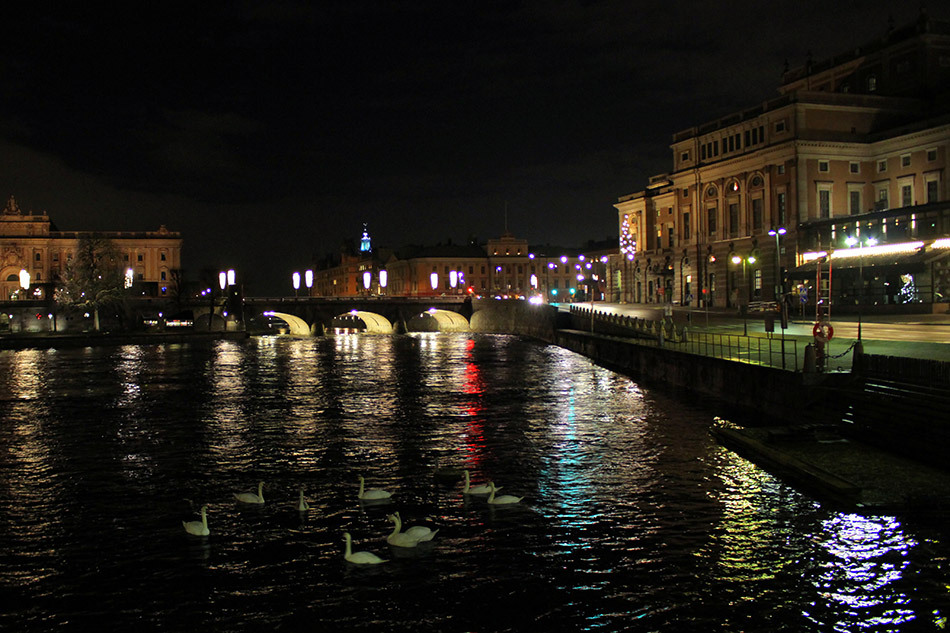 įdomiai nesuderinamai atrodo naktis, spalvos ir gulbės