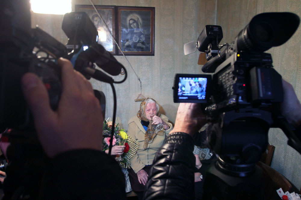 Kaunietei Onai Bacevičienei "stuktelėjo" 110 metų. Ta proga pasveikinti senolės atvažiavo gausus būrys valdžios atstovų ir žurnalistų. Kaip tokia proga neišgerti taurės šampano.