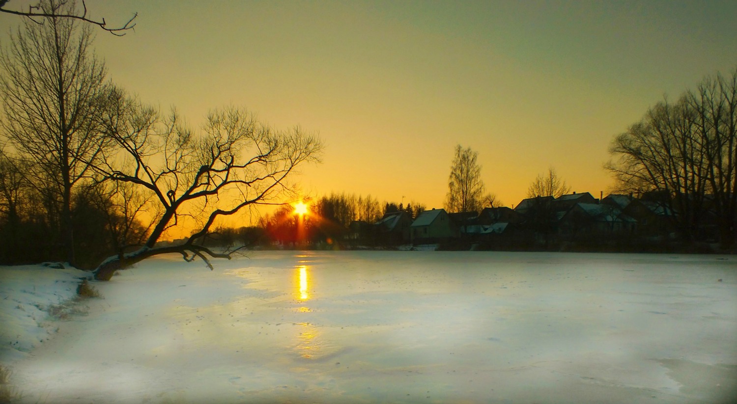 Ir palinkęs medis, ir saulė, ir saulės atspindys ant ledo- gražu...