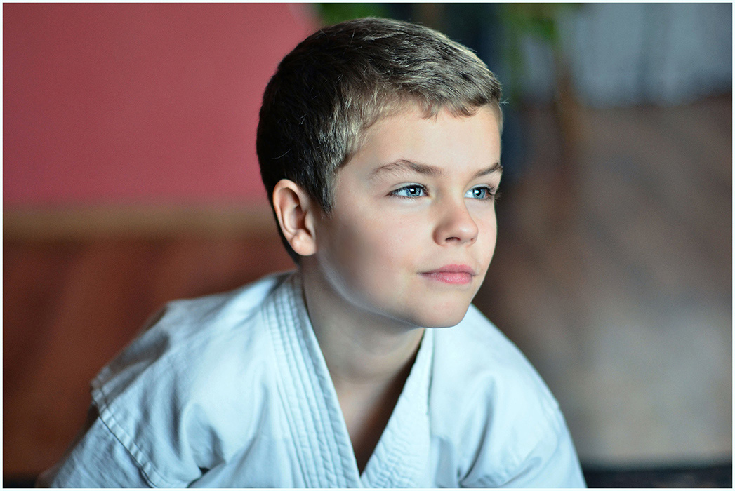 Pagal aprangą - kažkokios imtynės, dziudo ar karatė. Rimtai vaikis nusiteikęs.