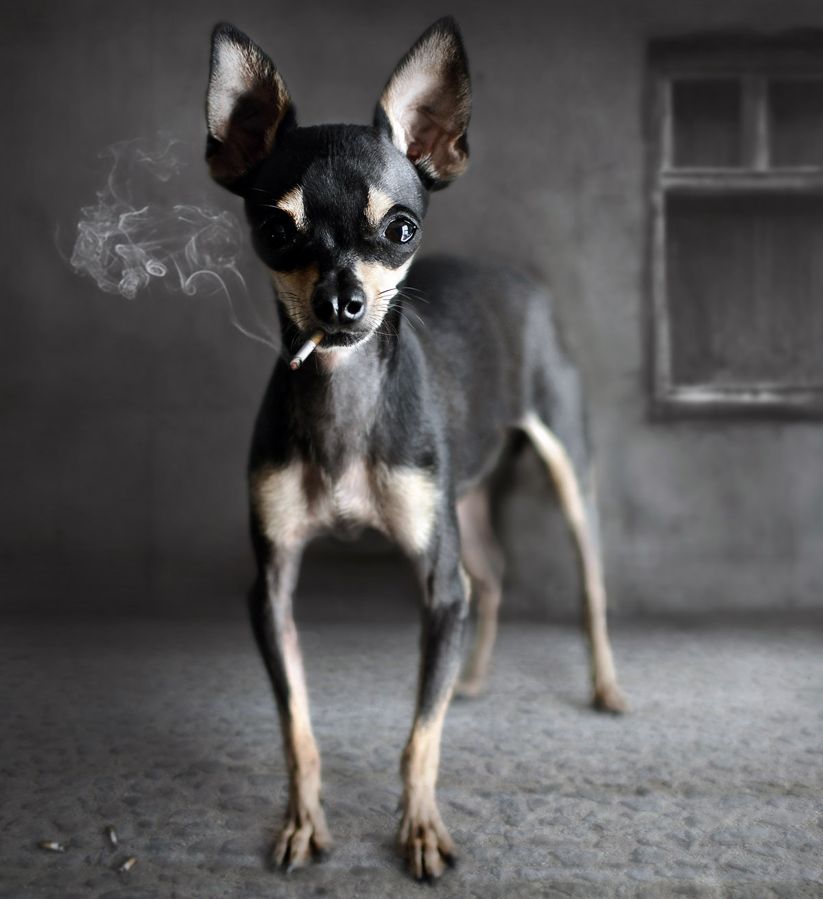 Arba cigaretė labai maža, arba šuo labai didelis. Fain šiaip