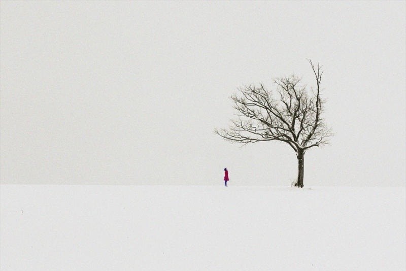 girl, red, tree