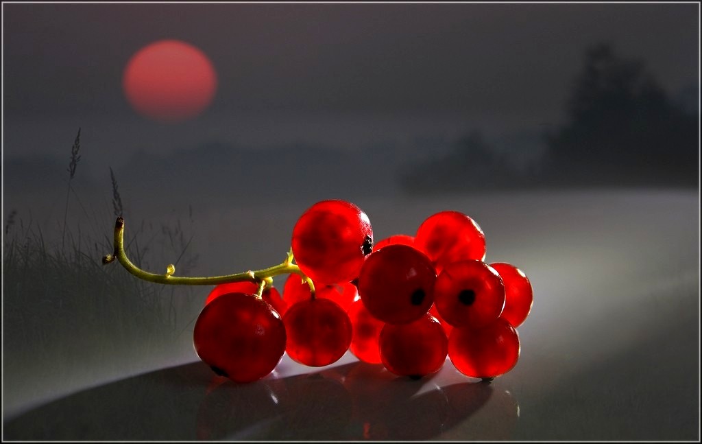 Raudonų uogų kekė.