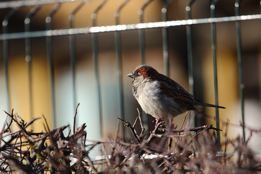 Šildosi...pavasarinis žvirbliukas...