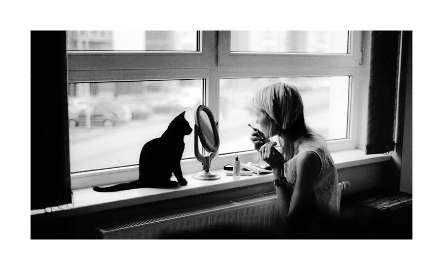 Kažkoks paslaptingas ryšys tarp katino ir merginos.. Tokio vaizdo aprašymu būtų galima pradėti rašyti knyga. Gražu.