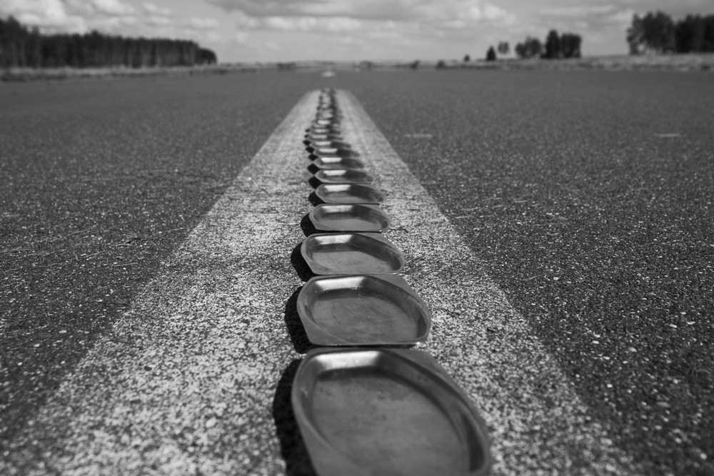 lėkštės lekia pasitikti ateinančiųjų (atvarytųjų). Labai simboliškas darbas. tik šešta foto man ne itin.