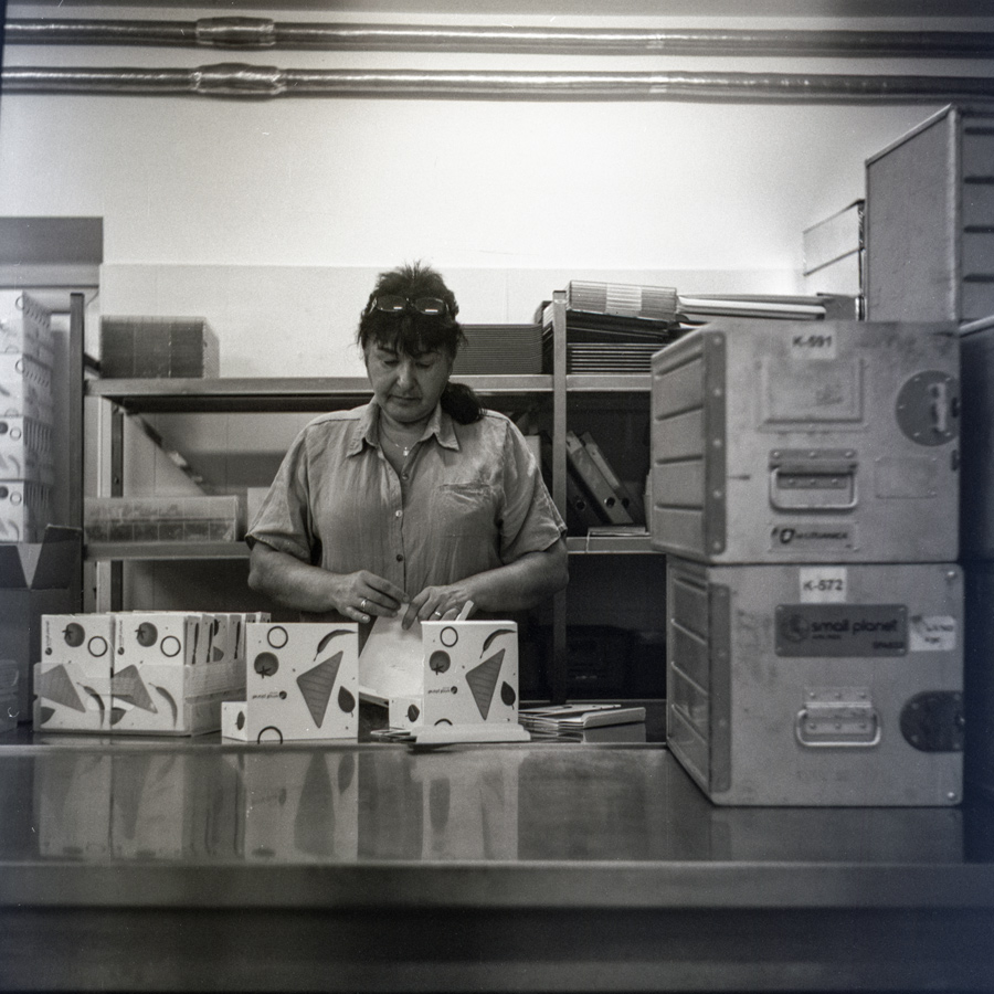 Šį kartą ne tiek ryškinimas, kiek pats fotografavimas rūpėjo, nes aparatą Woltaflex pirmą kartą rankose laikiau. Tikriausiai, sunkiausiai buvo "kadruot" per tą viršutinę "akį". Atrodė, kad aparatą laikau tiesei, bet kai išryškinau, tai vajėėė - ir kur gi aš žiūrėjau! :))) O dar ir žmonės - juda kruta, mandražinasi, o apšvietimo minimumas, bei kol nusireguliuoji ryškumą - žiūrėk - tavo "fotomodelis" - jau kitoj vietoj :)))