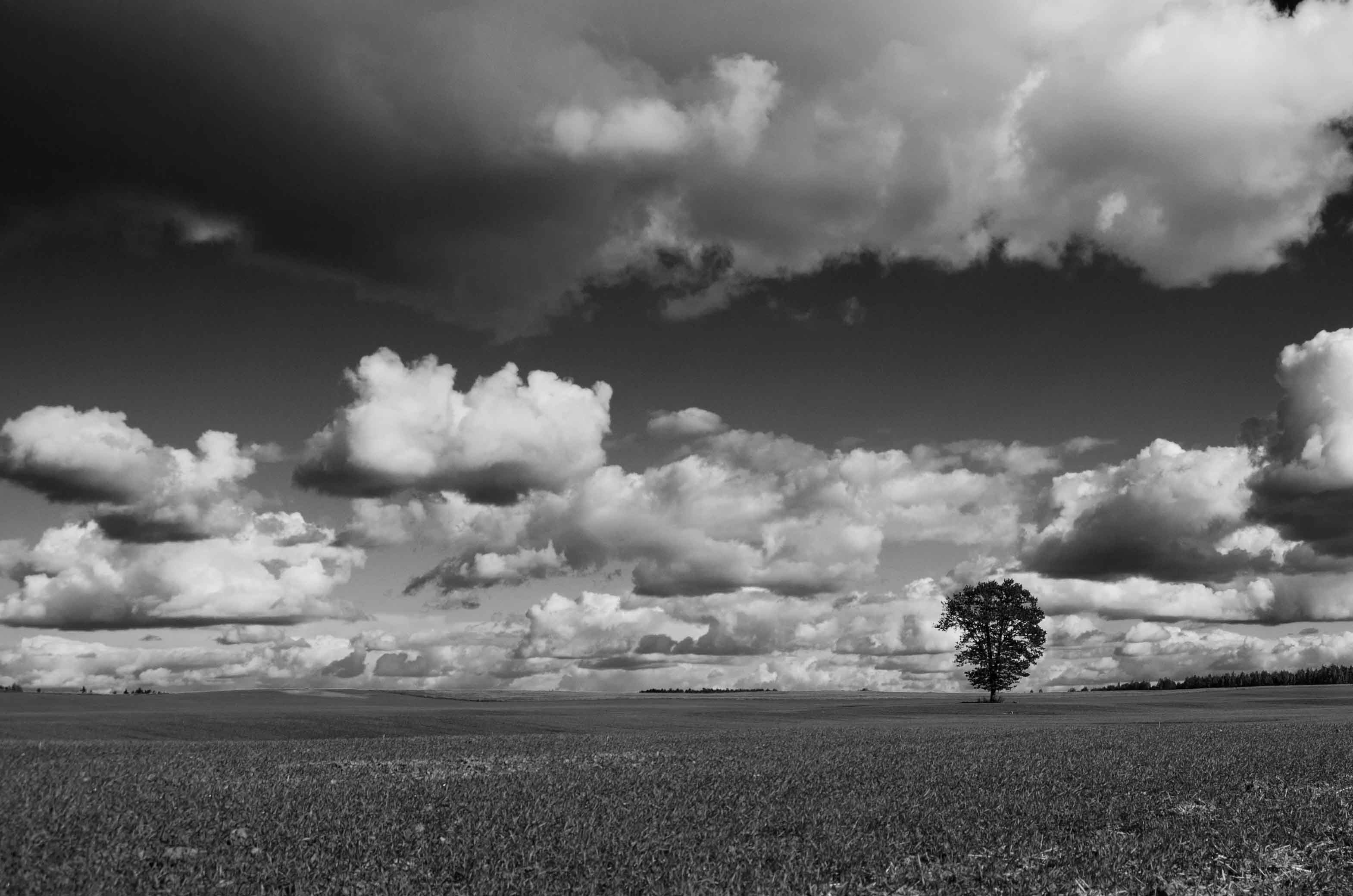 Puikiai, horizontas vietoj ir medis vienišas kaip tik, o debesų grožis...